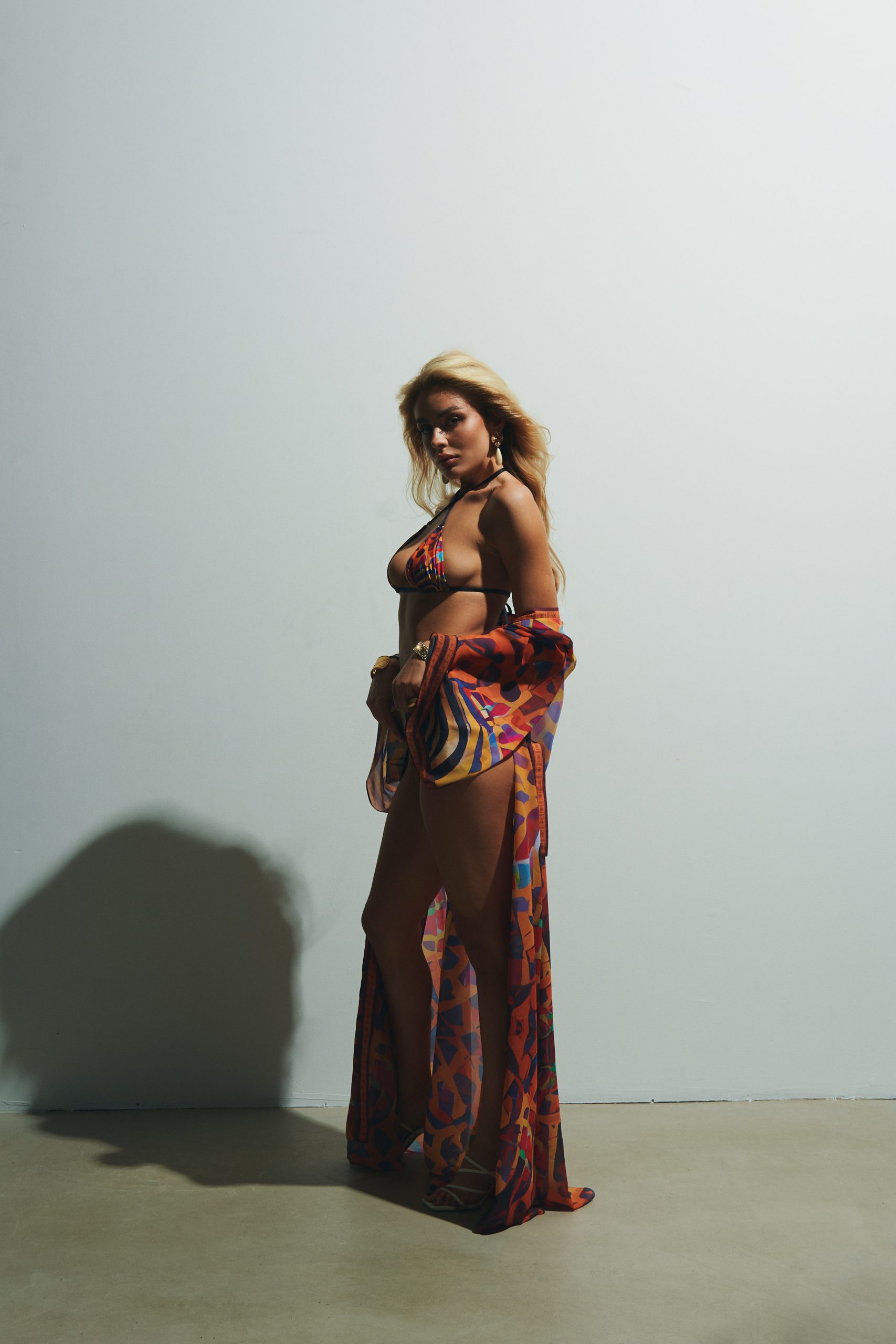 Поради від Chaika: поєднуйте туніку із принтованими трусиками на тонких завʼязках Africa із верхом Africa (трикутниками на тонких завʼязках трикутниками / з чашками на широких завʼязках), а також з пляжним одягом з колекції Africa.
